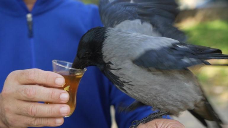 OTOBÜS KAPTANININ ‘GURME’ KARGASI ORGANİK GIDALARI SEVİYOR