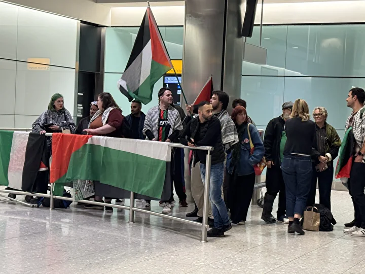 Aktivistler Wilkinson, Andrieu, Cummings ve Snedker’i, yerel saatle 21.25’te (TSİ 23.25) indikleri Londra Heathrow Havalimanı’nda Filistin destekçileri ve yakınları karşıladı.