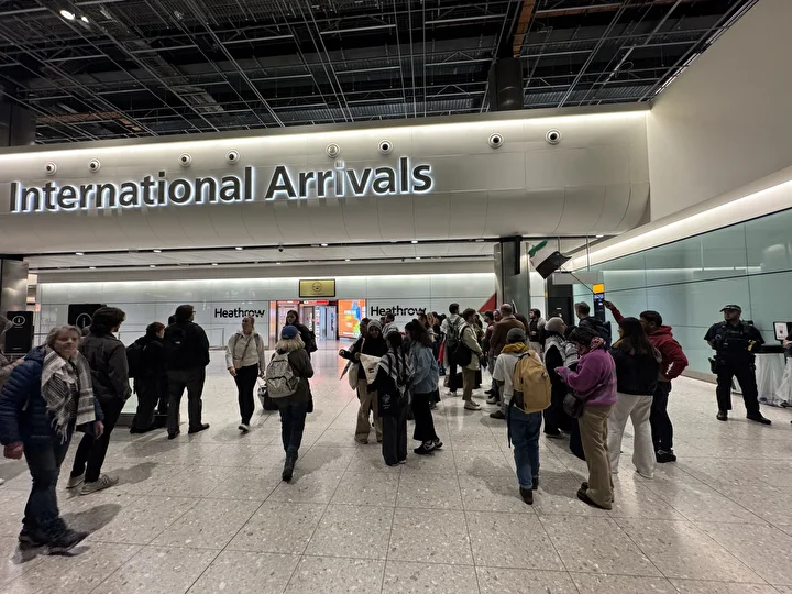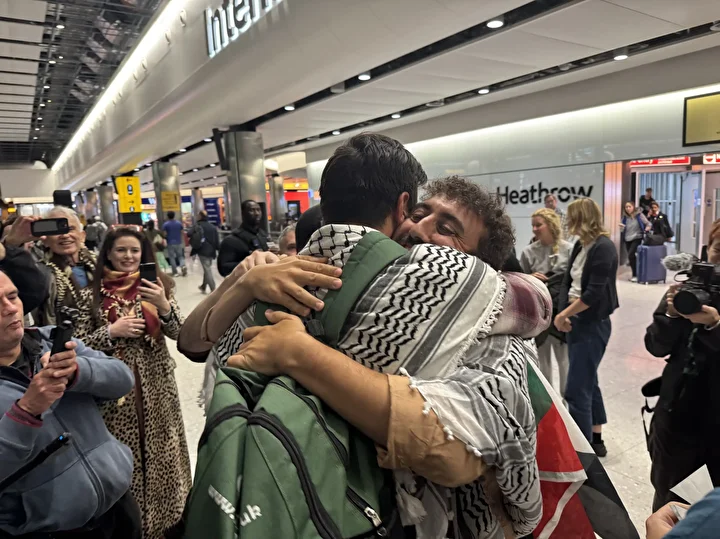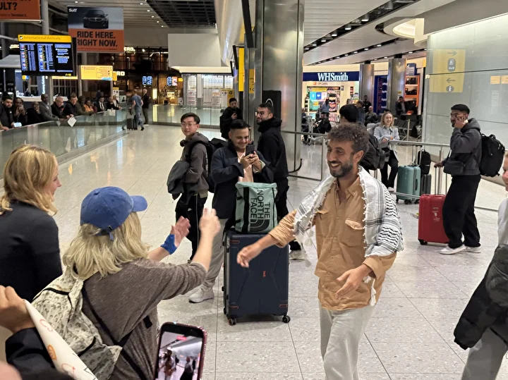 İsrail’in, Gazze’ye insani yardım götürmek için yola çıkan Küresel Sumud Filosu’na yaptığı saldırıda alıkonduktan sonra dün Türkiye’ye sınır dışı edilen 4 İngiliz, Türk Hava Yolları’nın tarifeli uçağıyla Londra’ya geldi.