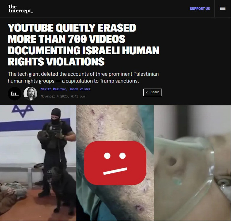 YouTube ayrıca, videoları paylaşan Filistinli insan hakları grupları Al-Haq, Al Mezan İnsan Hakları Merkezi ve Filistin İnsan Hakları Merkezinin (PCHR) hesaplarını platformdan kaldırdı.